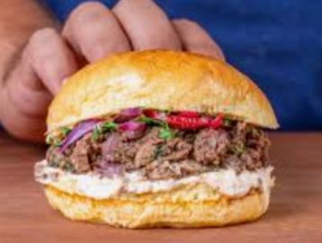 A traditional Egyptian Street food, where juicy marinated and cooked beef is served in a soft, fluffy bun.